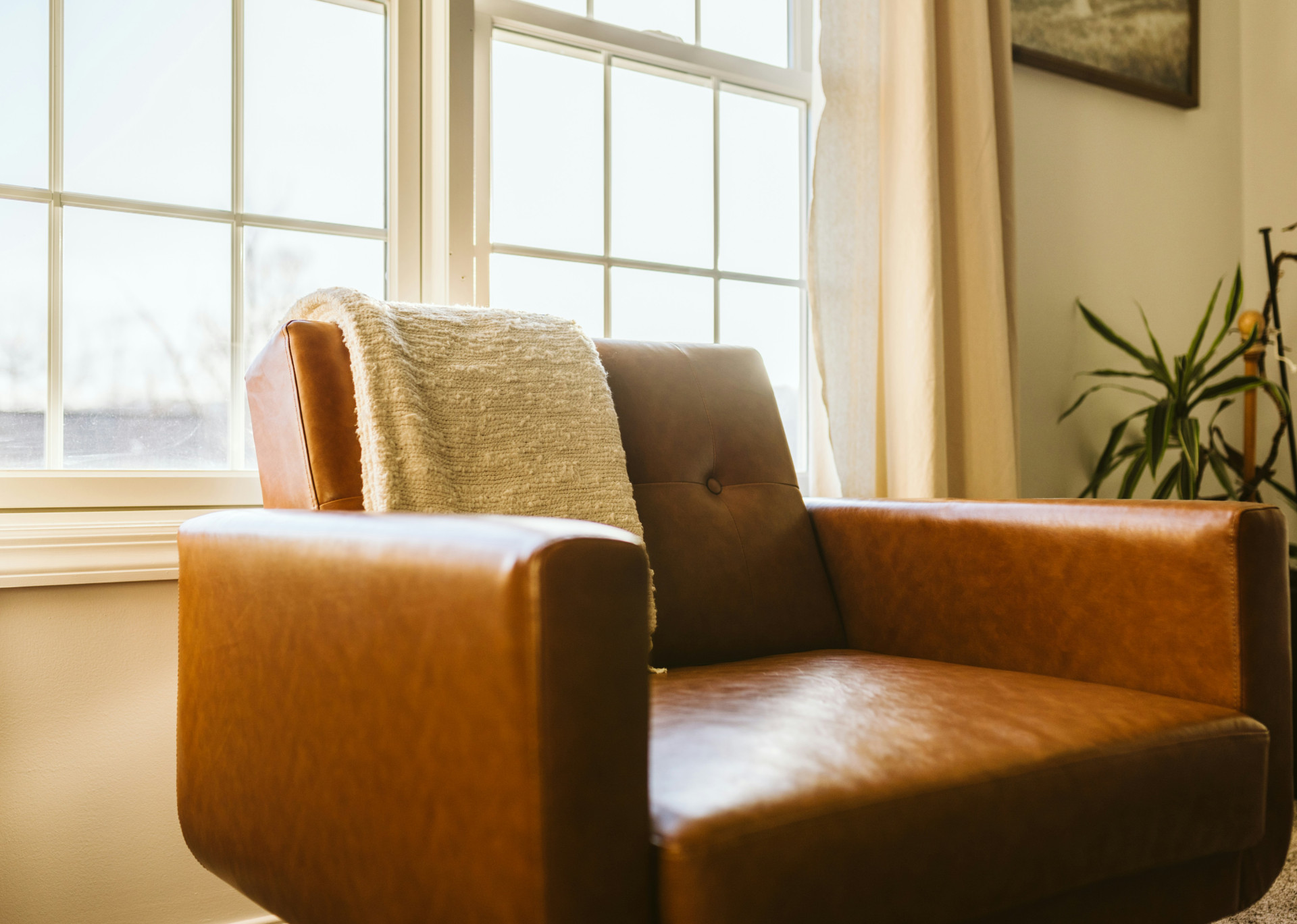 Dammsug tyget regelbundet och använd lämpliga vårdprodukter för läder. Undvik direkt solljus som kan bleka materialet och vänd eventuellt kuddar för att fördela slitaget jämnt.